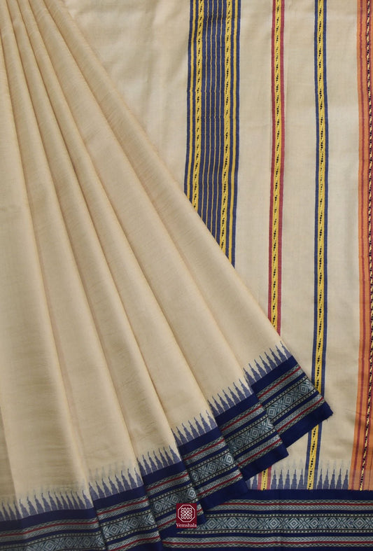 Natural / Blue / Peach Karvati Kinar Tussar Saree