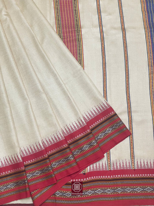 Natural / Maroon / Peach Orange Karvati Kinar Tussar Saree