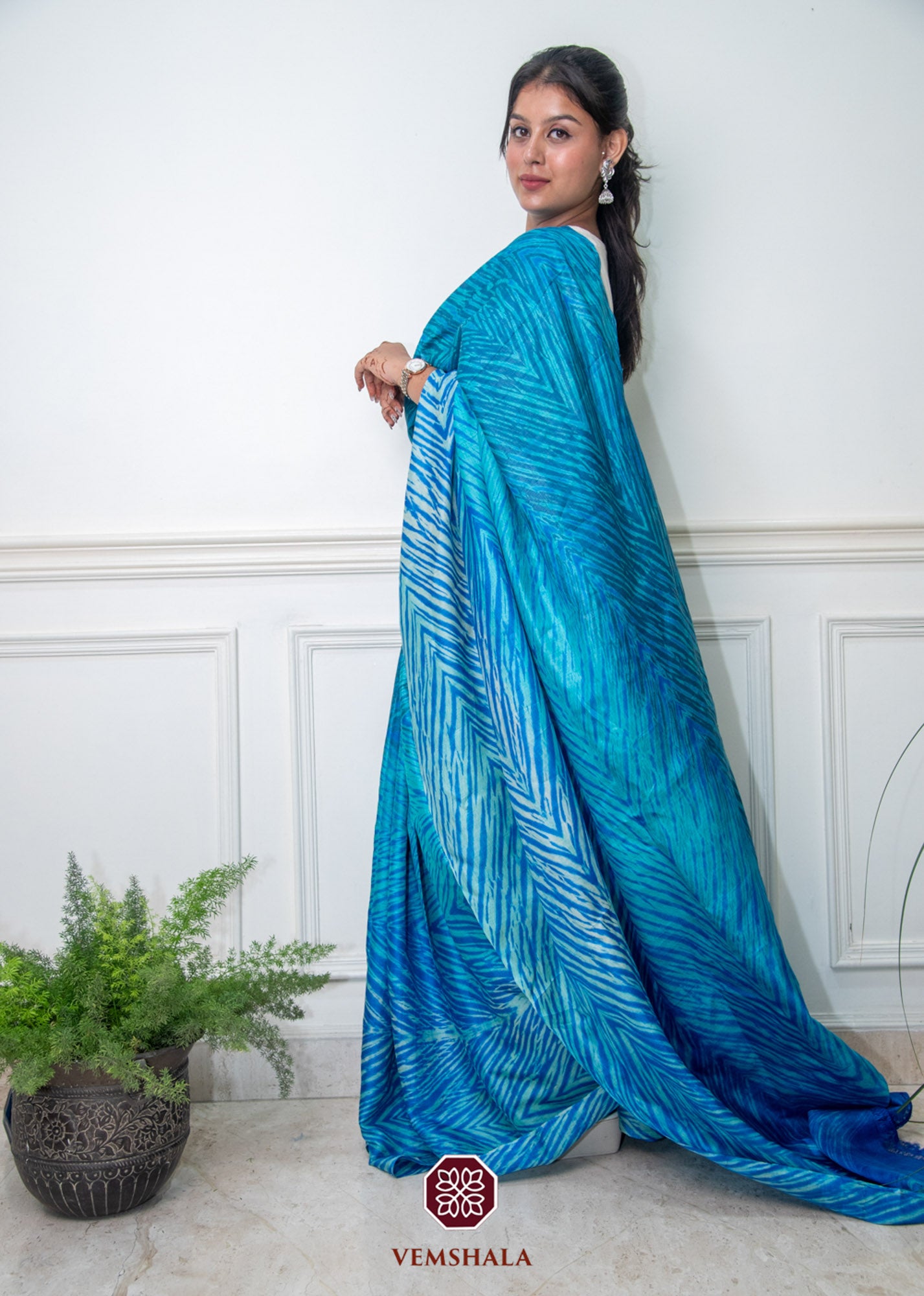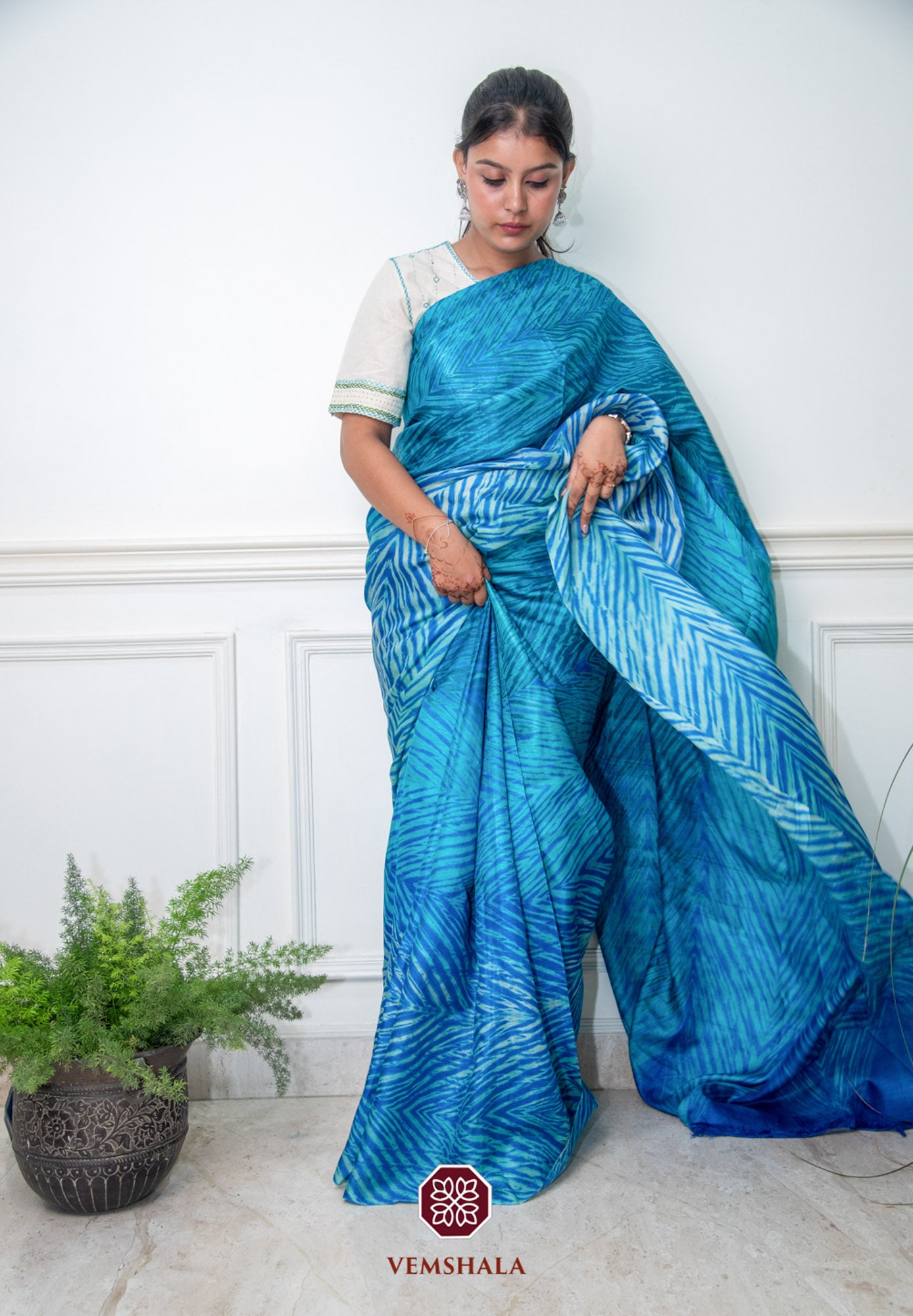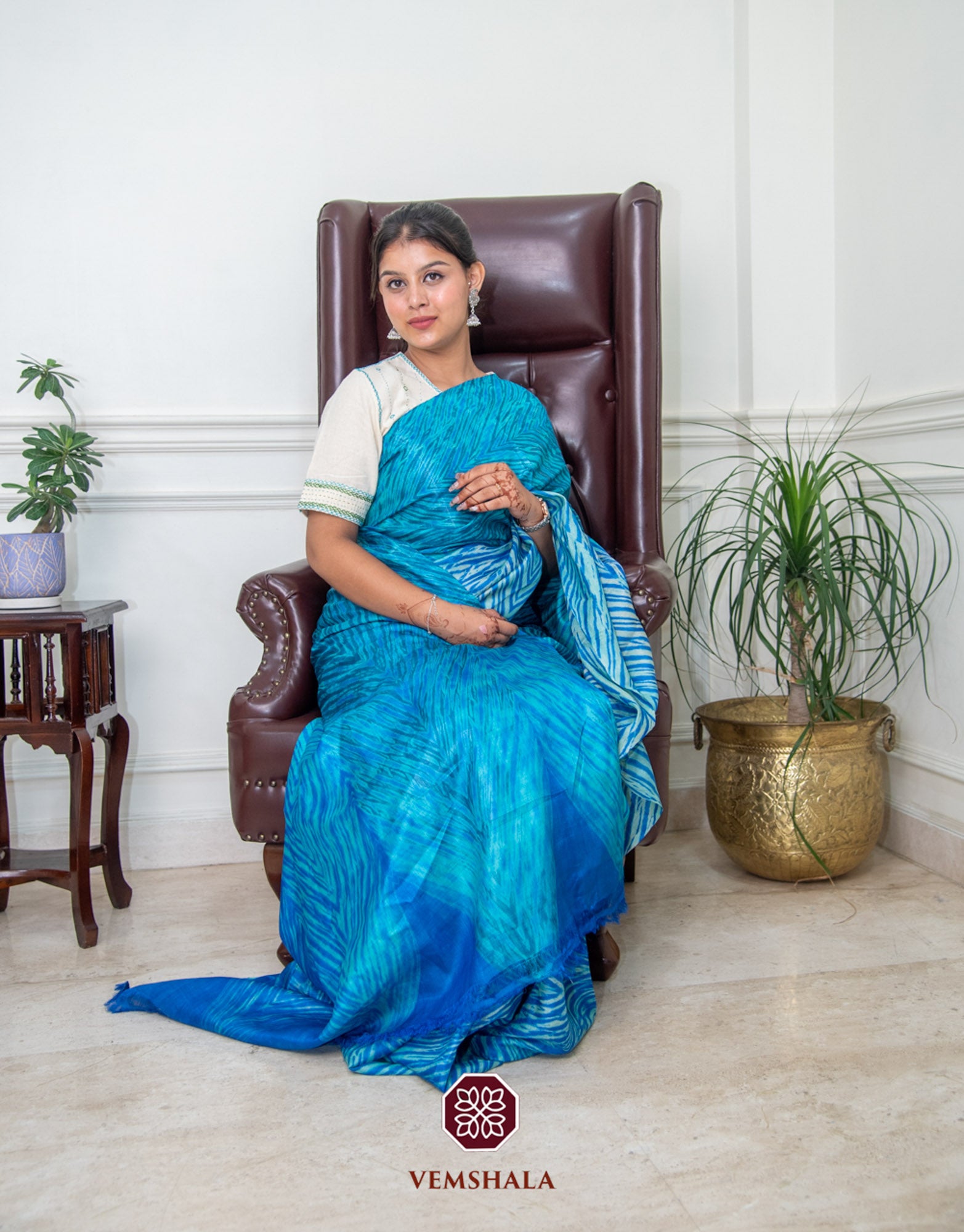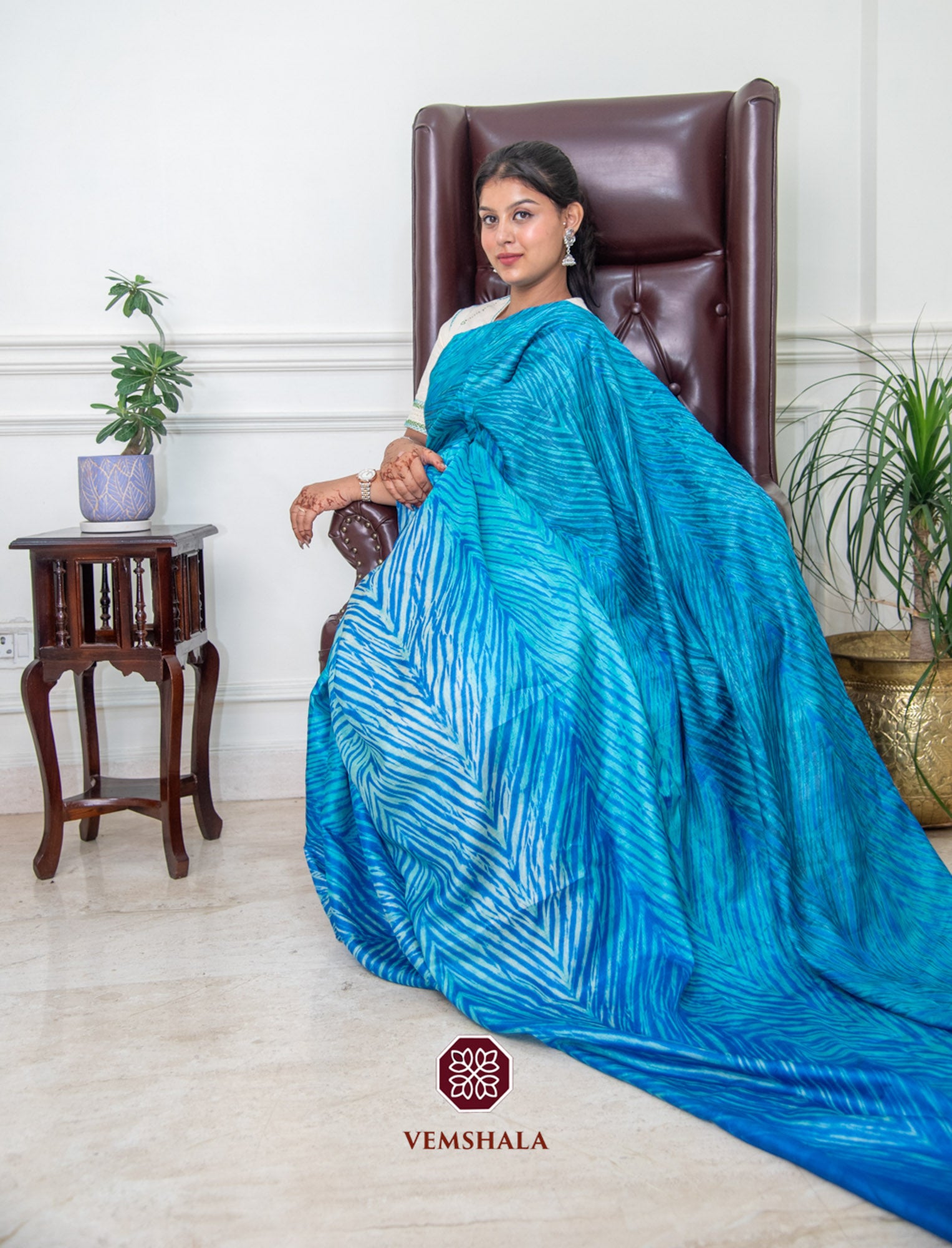 Aquamarine Shibori Leheriya Tussar Silk Saree : Ambariya