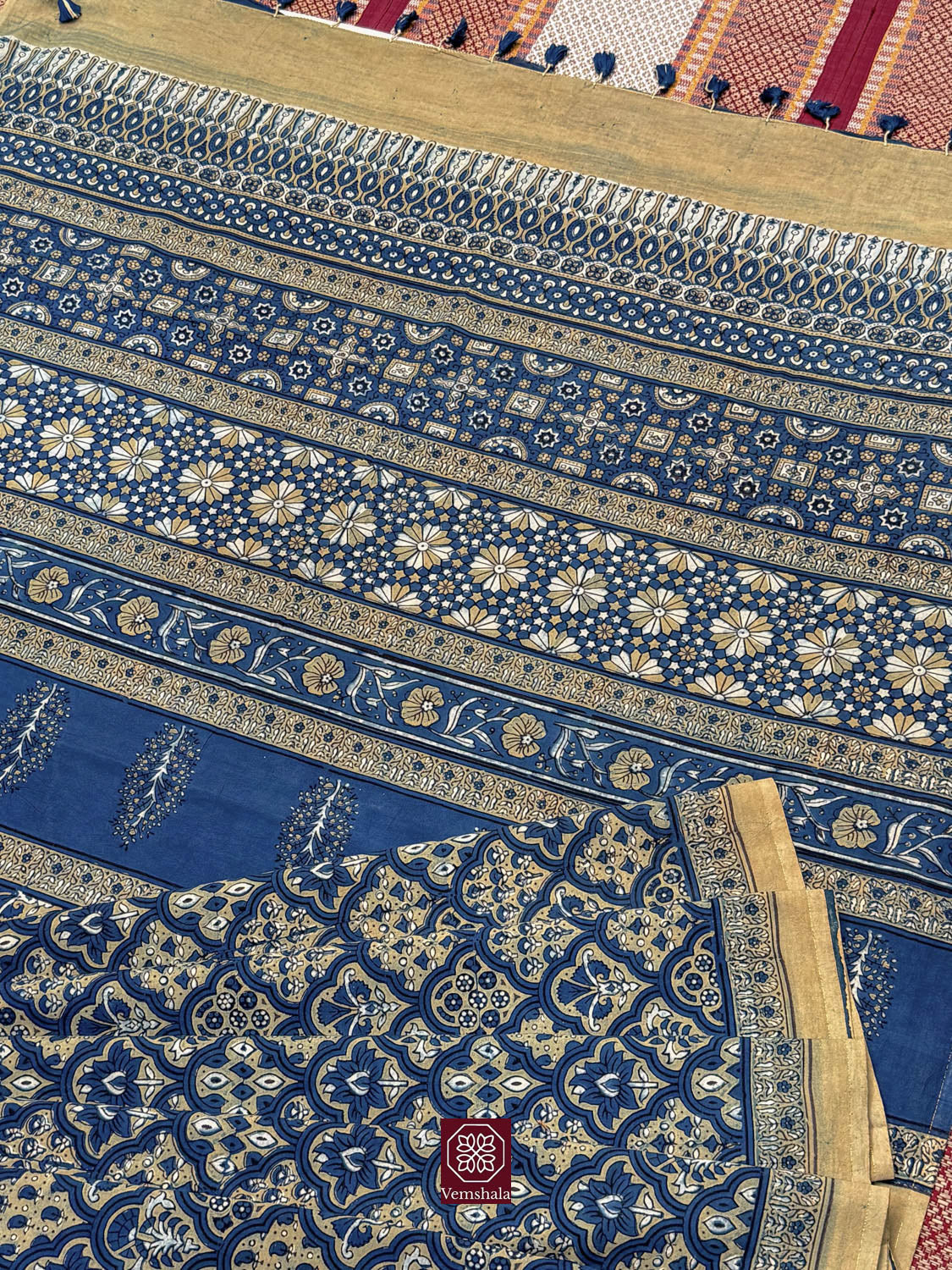 Indigo / Ecru Ajrakh Hand Block Cotton Saree