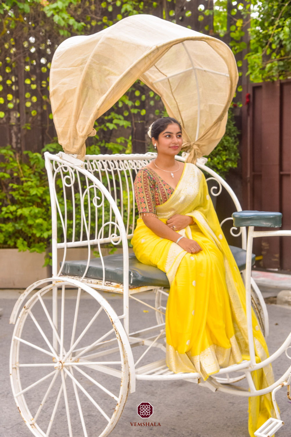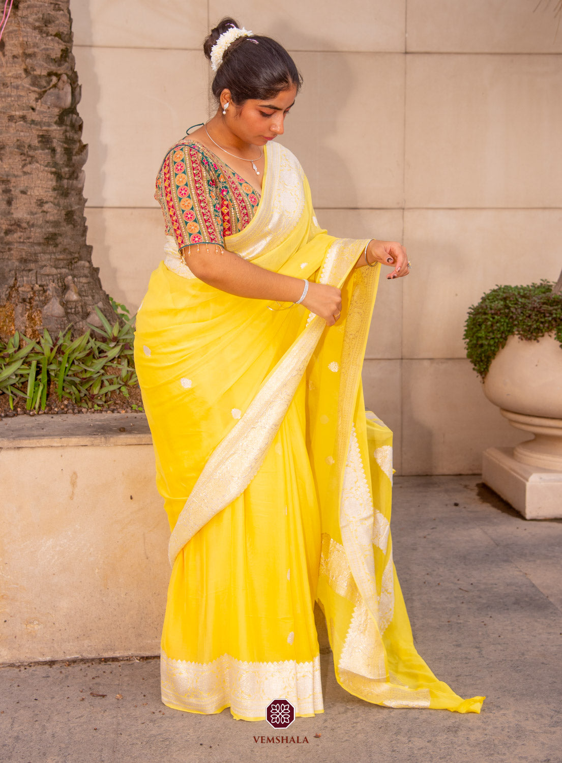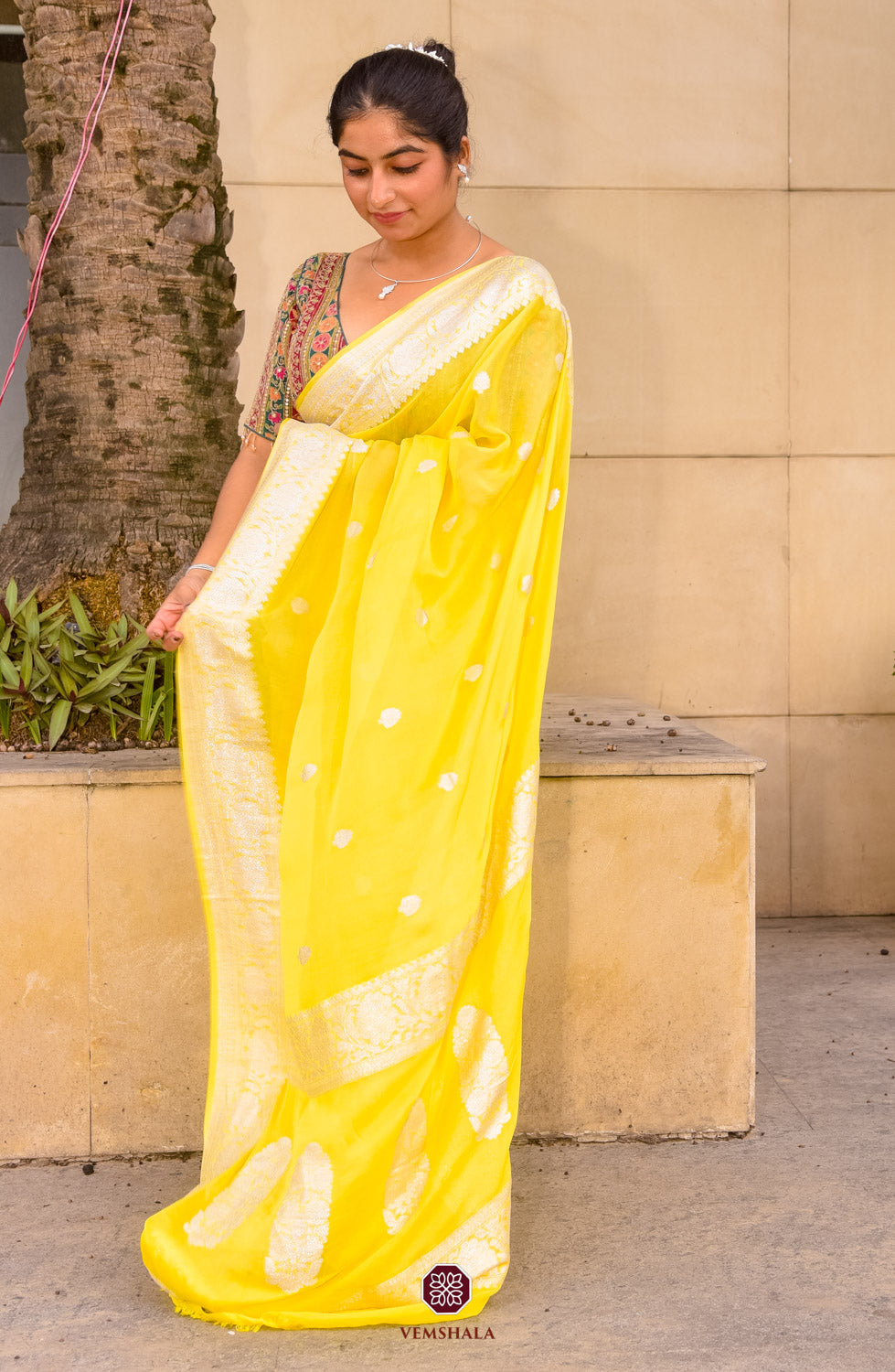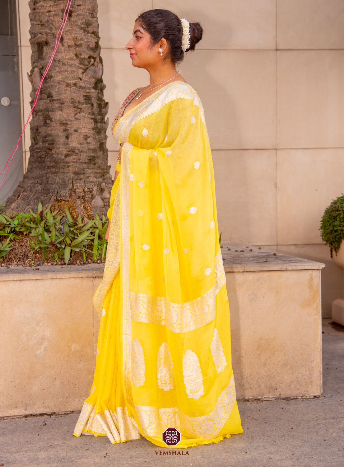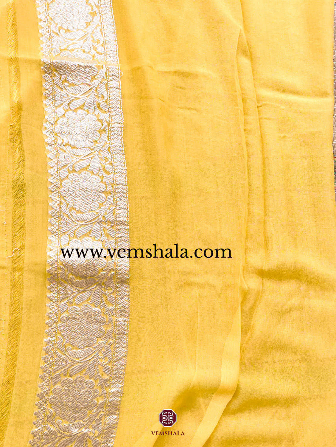 Sunshine yellow Banarasi Khaddi-Georgette Saree : Bhor