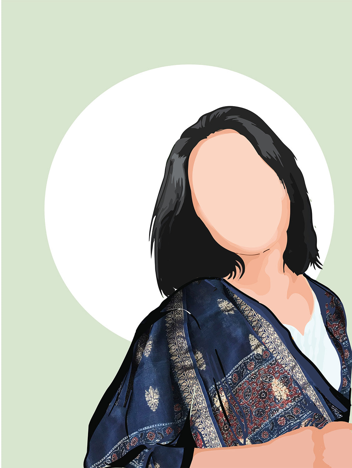 Turmeric / Indigo Ajrakh Cotton Saree : Medha