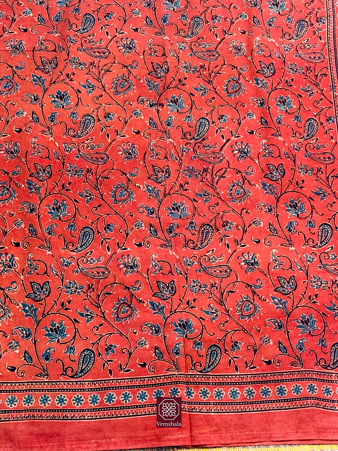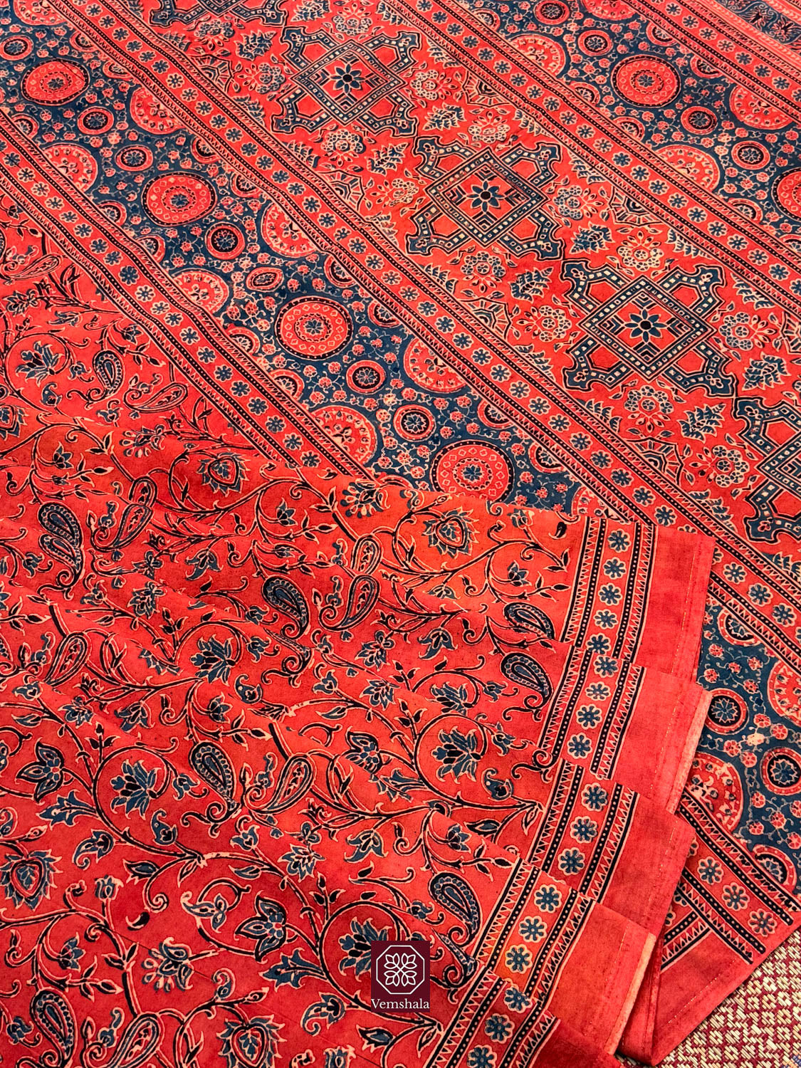 Red / Indigo Ajrakh Hand Block Cotton Saree