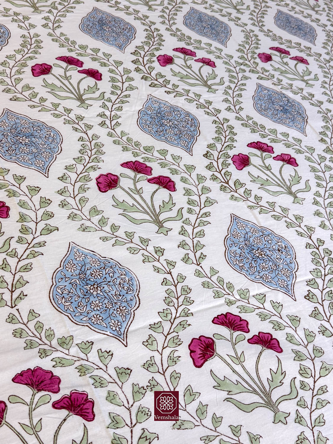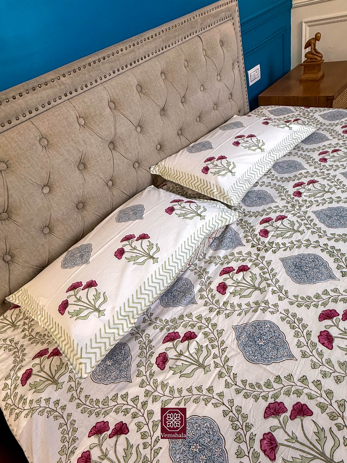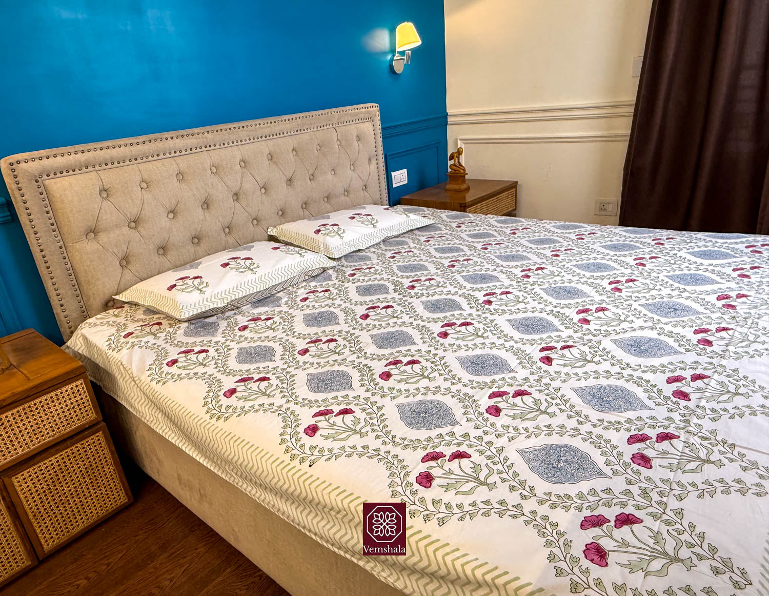 Genuine Cotton Bed sheet with 2 Pillow covers, made beautifully using wooden hand blocks at Sanganer, Jaipur.