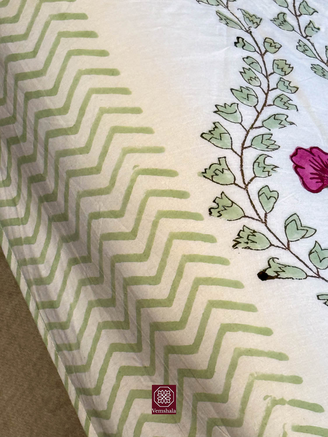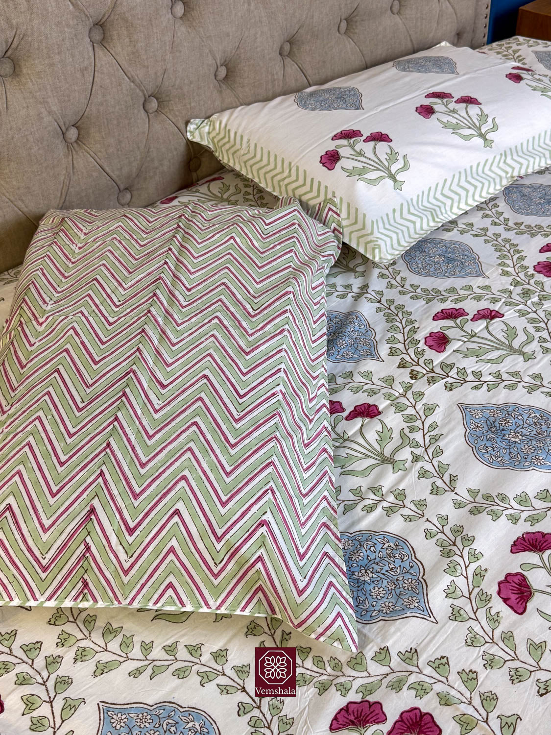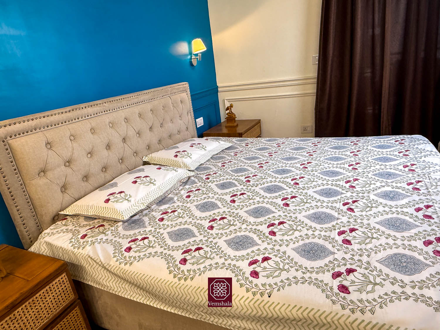 Genuine Cotton Bed sheet with 2 Pillow covers, made beautifully using wooden hand blocks at Sanganer, Jaipur.